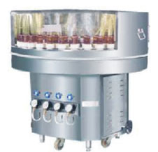 Designed to wash glass bottles of different sizes and shapes. The bottles are washed inside and outside.