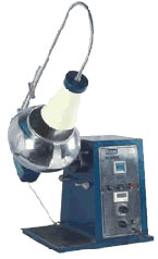 | Coating Pan can be mounted on Motor Drive unit via Universal gearing type - UD, which permits Coating pan to be held at any angle up to 45o with reduction in speed. For drying the coated-tablets an infrared drying attachment with adjustable height is provided. |